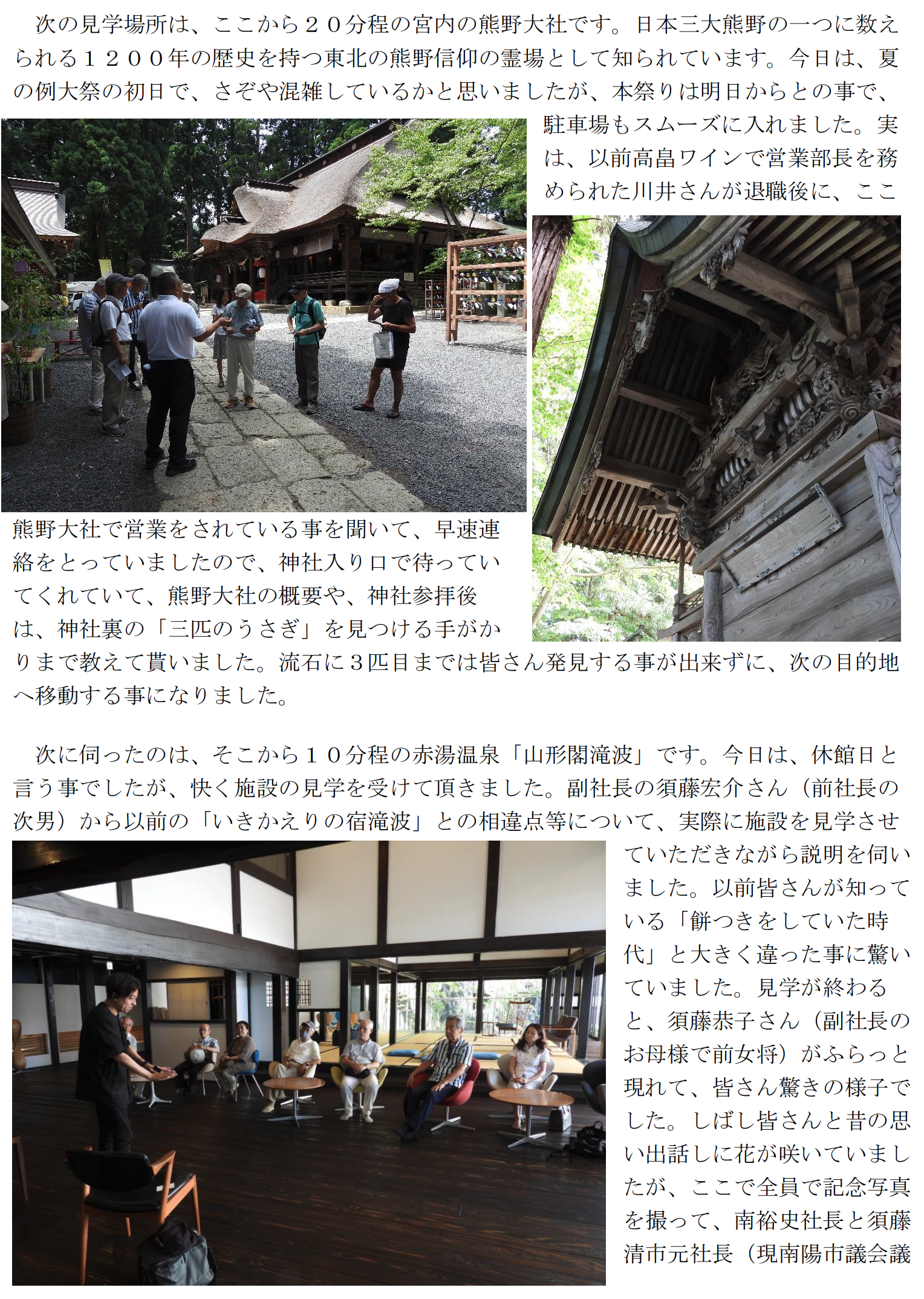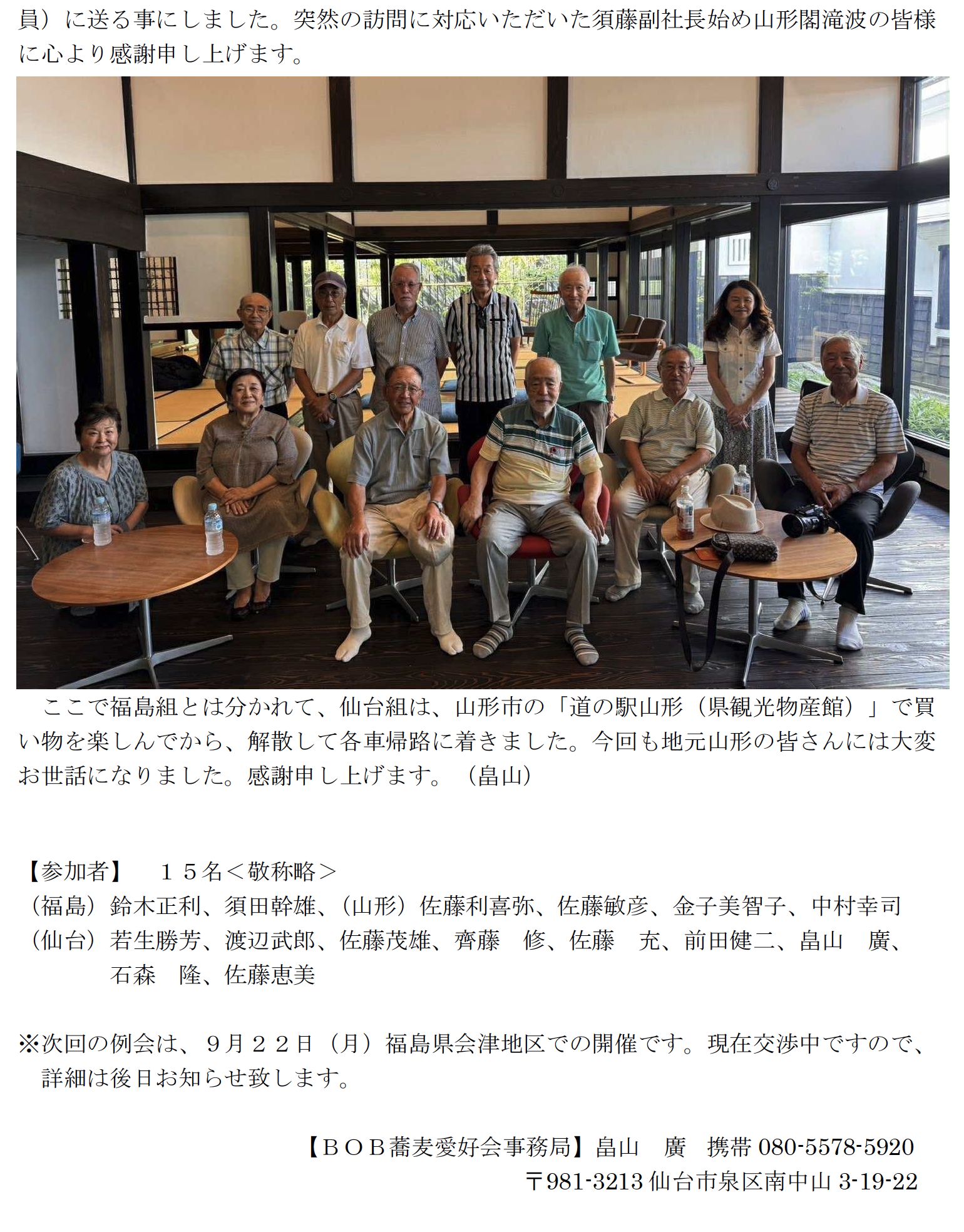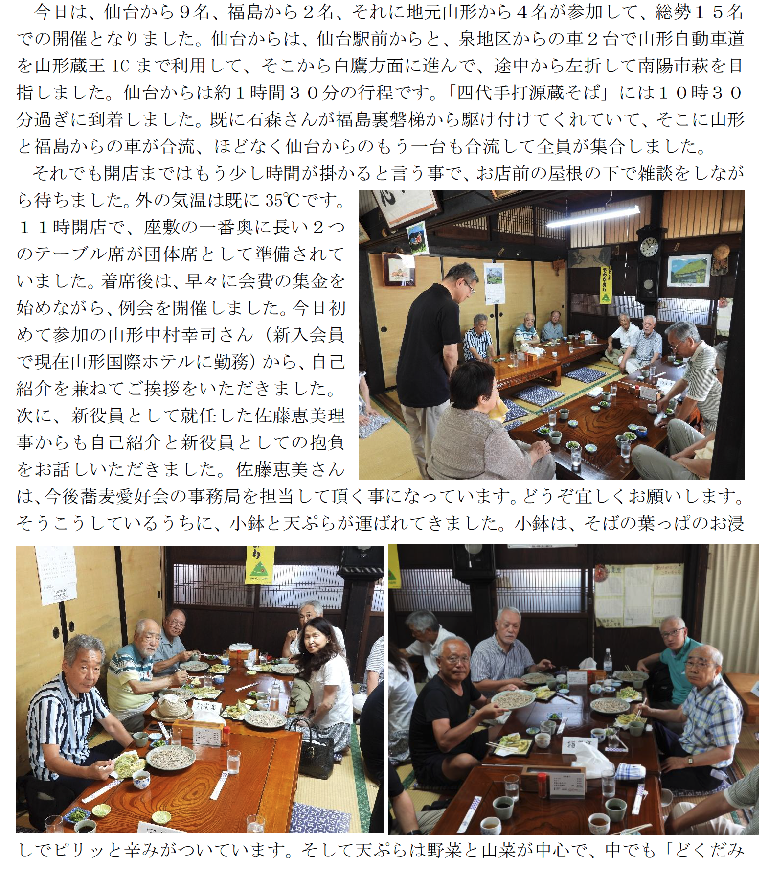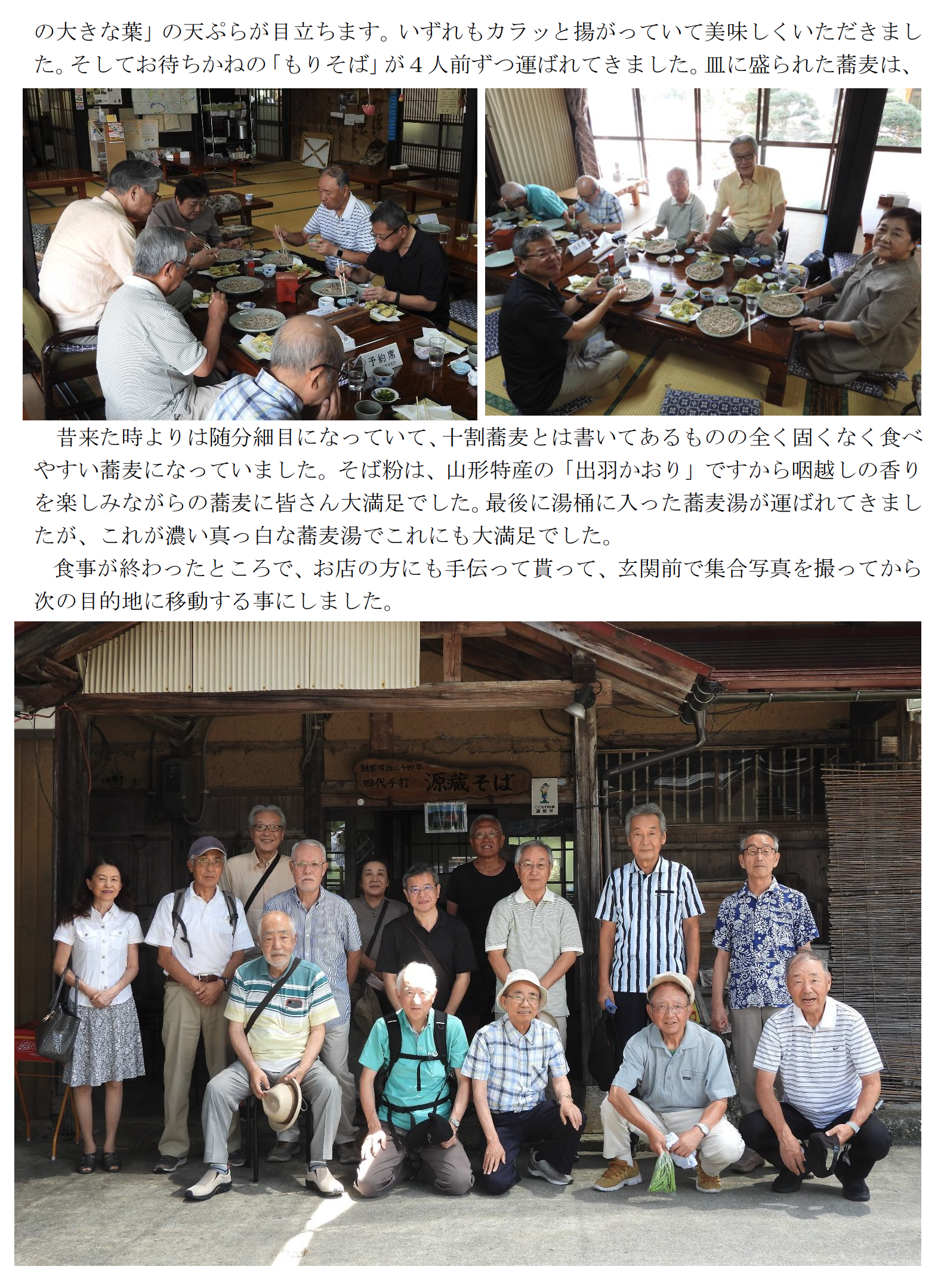蕎麦愛好会7月例会は、7/23(水)山形県南陽市萩にある「四代手打源蔵そば」を訪ねました。「四代手打源蔵そば」は、明治24年創業の歴史ある老舗蕎麦屋で、築150年の茅葺屋根の伝統的な建築様式を保持した、古き良き日本の風景を今に伝えてくれています。また近くの宮内熊野大社の夏の例大祭が今日から始まると言う事もあって是非立ち寄ってみる事にしました。