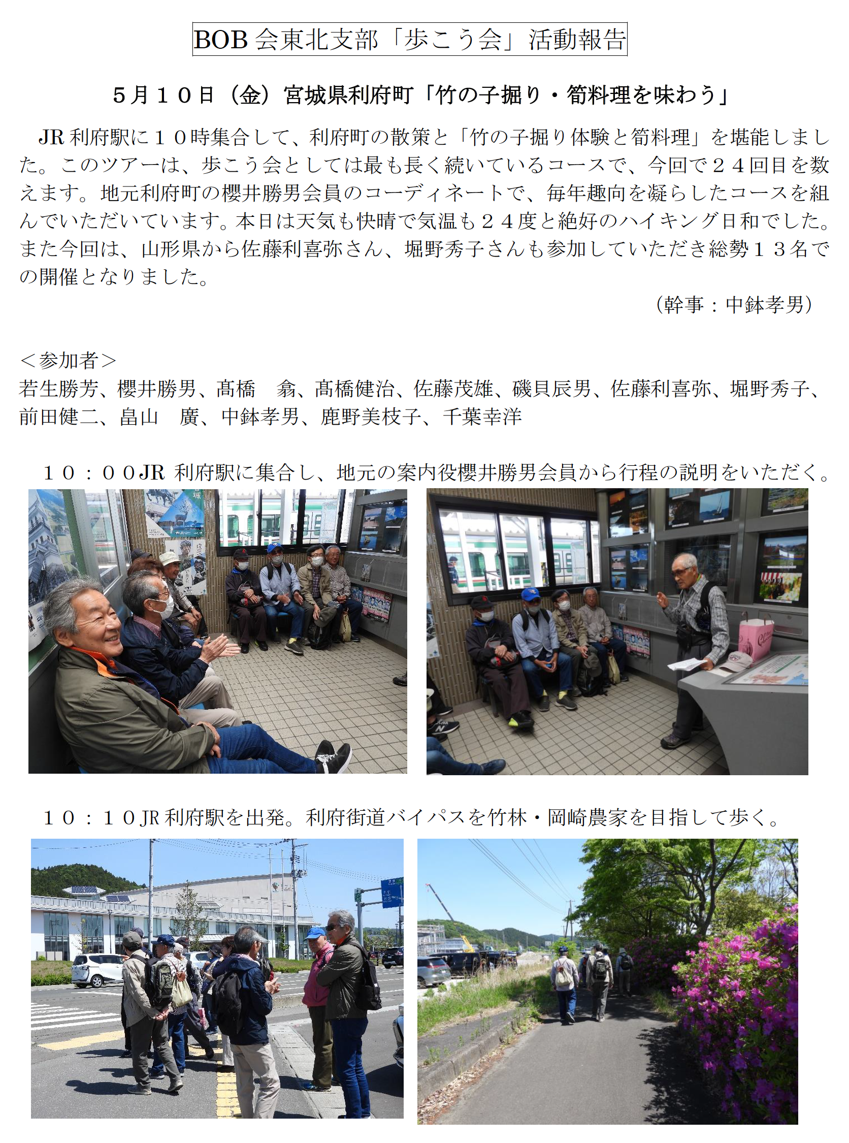 東北支部から「歩こう会」活動報告「竹の子掘り・筍料理を味わう」が掲載されました。投稿日:2024.05.12