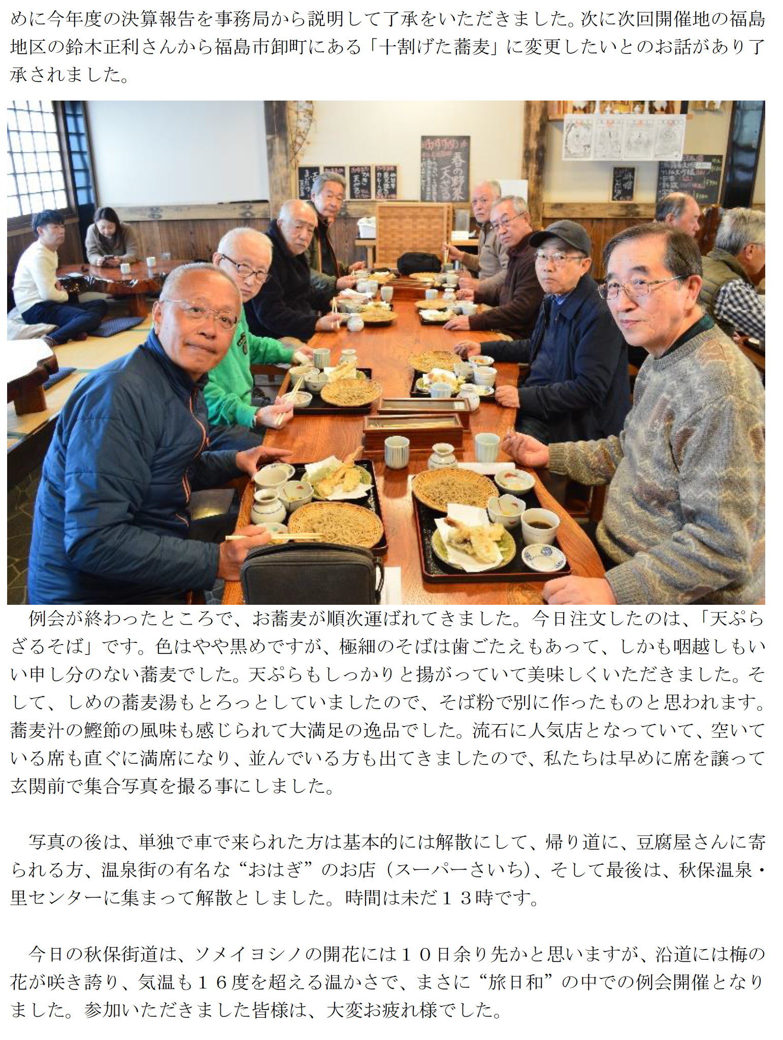 東北支部から「蕎麦愛好会3月例会報告」が掲載されました。投稿日:2024.03.26