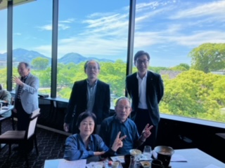 2024年5月18日(土)熊本地区会の愛称を「熊本ぎんなん会」と決定後の最初の懇話会を、快晴の下熊本城エリアの「城見櫓」にて開催しました。参加人数が14名と少数にも拘らず、熊本城の天守閣が一望できる5階の会食場を提供して戴いた施設さんに感謝です。