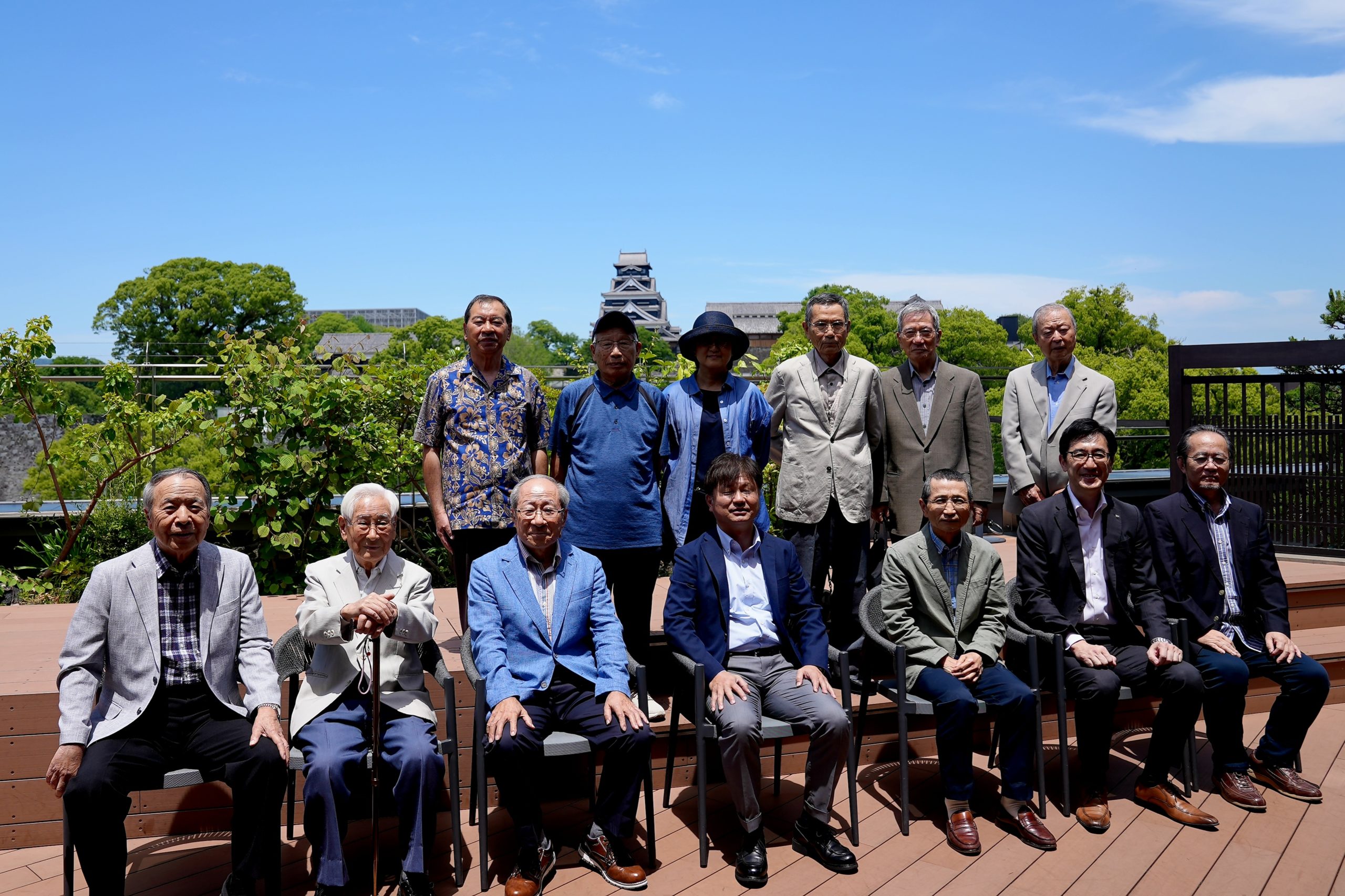 先ずは、開宴前に屋上庭園で熊本城をバックに記念撮影。