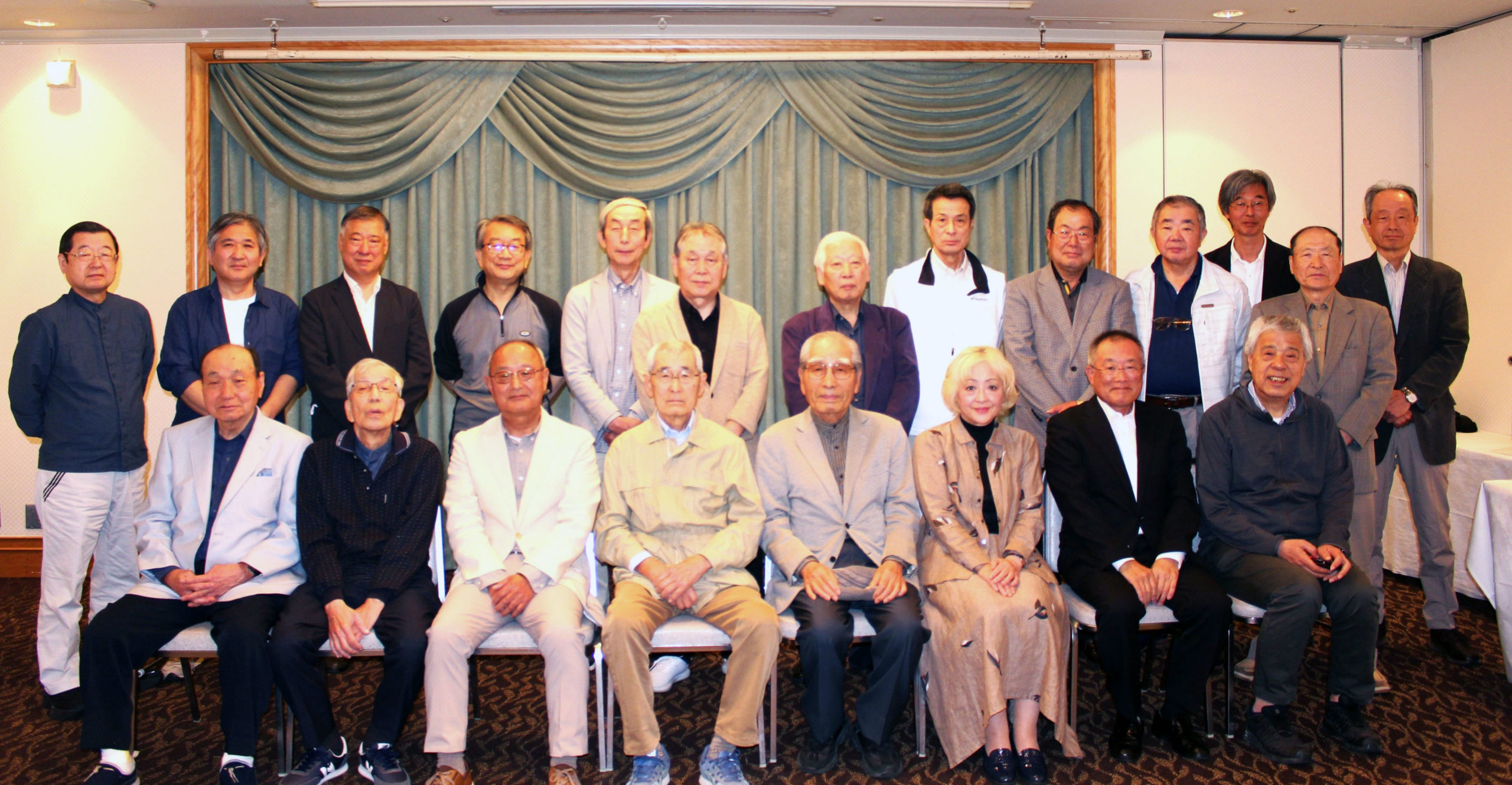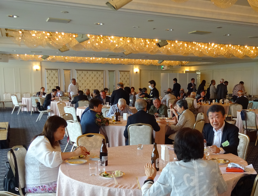 記念撮影の後、懇親会が開催されました。最長老の熊谷伸一さんの乾杯でスタートし、新世話人の挨拶、また久しぶりに会う会員との楽しい時間を過ごした後、恒例となった藤井久さんの佐渡民謡に聴き入り、最後は田村秋一さんの関東一本締めにてお開きとなりました。 (高橋 記)