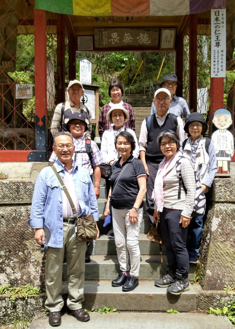 またまた、険しい山道を歩き、東奥ノ院へ向かう途中、大河ドラマ「鎌倉殿の13人」にも登場した畠山重忠が愛馬を休ませたという洞窟で石仏群を見て、そこから本堂に戻り、長い階段を下りました。