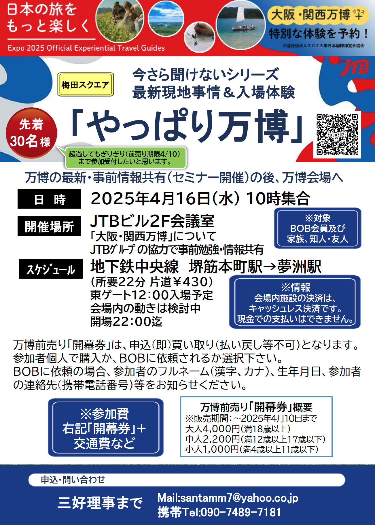 BOB会関西支部企画「開幕券で大阪・関西万博へ!!」