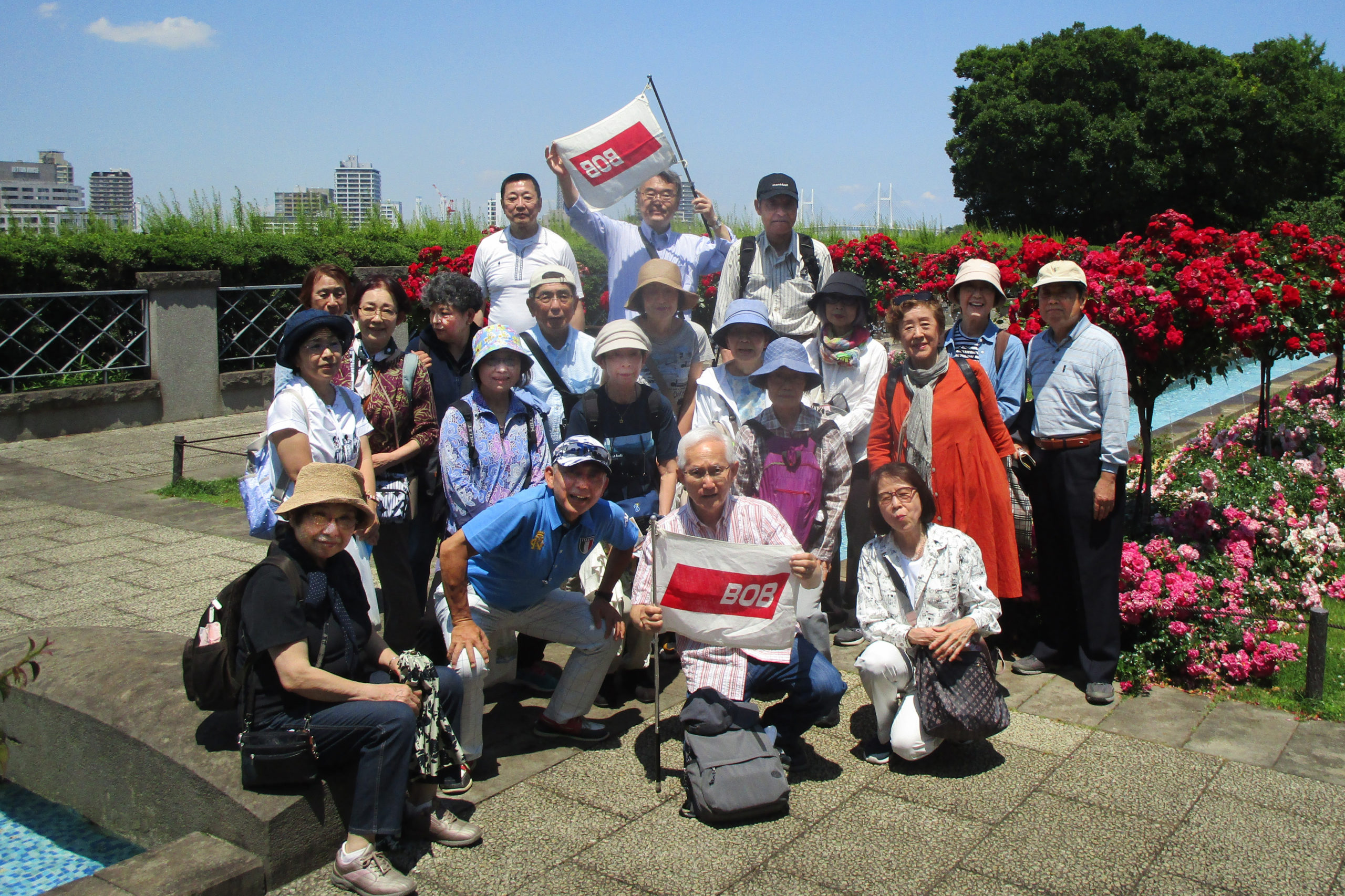 好天に恵まれた6月5日、石川町駅に24名が集合。まず1970年代に流行したファッション「ハマトラ」(横浜トラディショナル)発祥の元町ショッピングストリートを闊歩しました。エスカレーターでアメリカ山公園に上り、山手外国人墓地、バラや紫陽花の美しい港の見える丘公園から、みなとみらい、横浜ベイブリッジの眺望を楽しみ、すっかり気分は晴れ晴れのハマッコです。