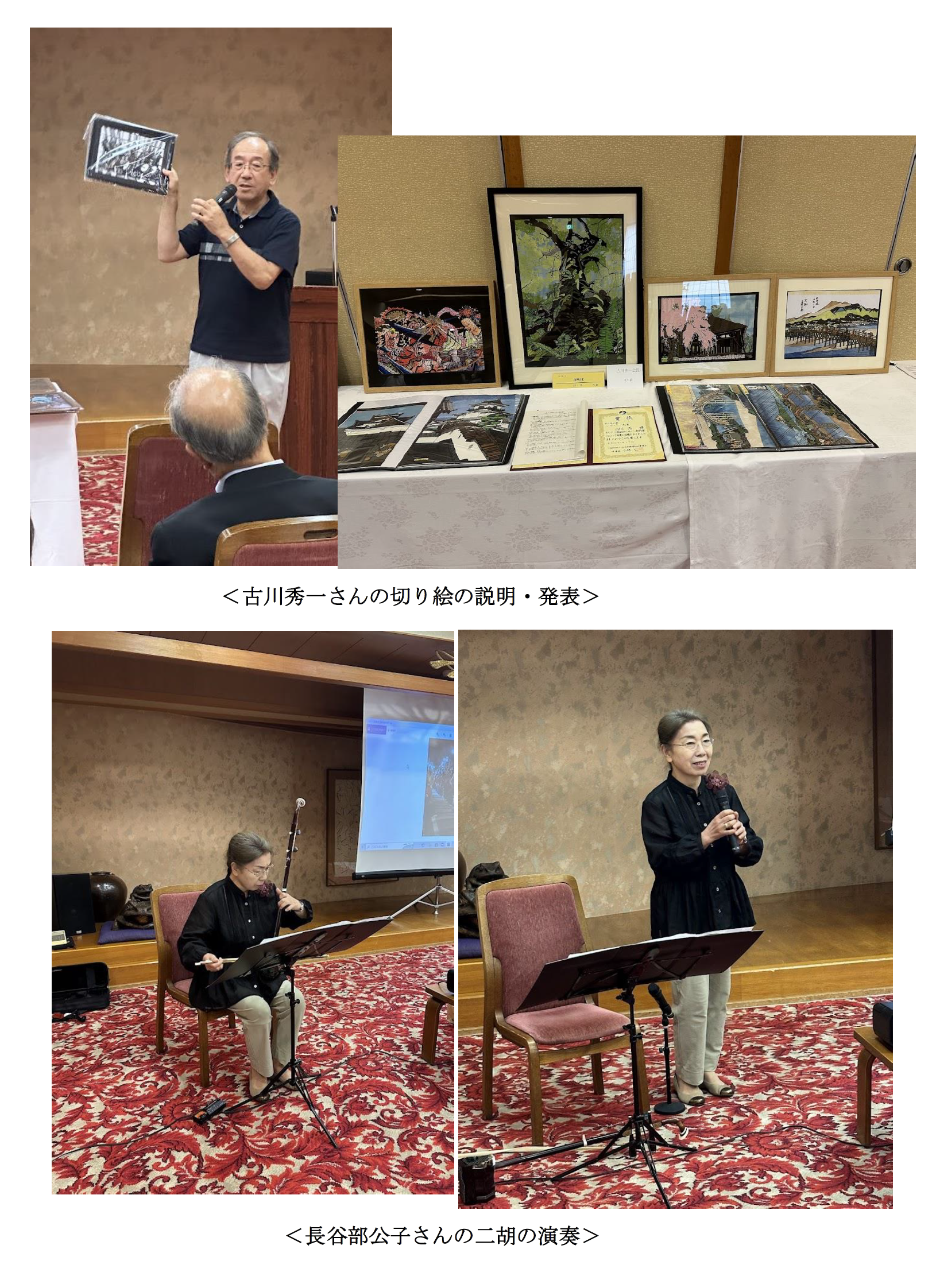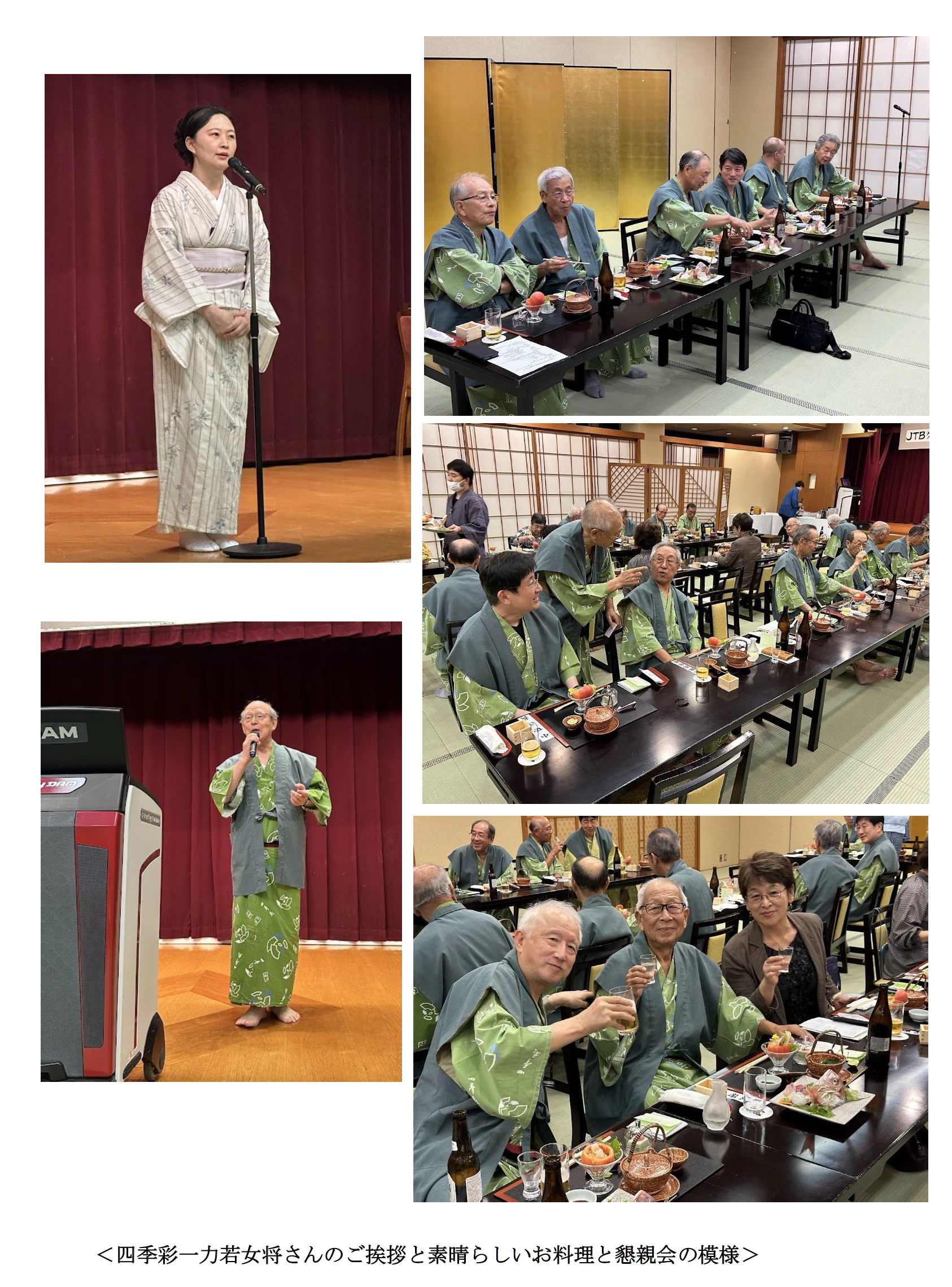 祝宴でのアトラクションは、長谷部公子会員(福島しゃくなげ会)による「二胡の演奏」に皆さん聴き入って、何度も盛大な拍手が沸き起こっていました。その後は、しばし四季彩一力ご自慢の手料理の数々に舌鼓を打ちながら、福島・会津の地酒を飲み比べていました。次のカラオケタイムでは進行役の阿部理事(カラオケ愛好会代表)のご指名が上手で間を開ける事無く、皆さん次々に十八番をご披露していました。祝宴の2時間は瞬く間に過ぎて、最後に前田顧問(前支部長)の中締めの音頭でお開きとなり、全ての式次第を終了しました。