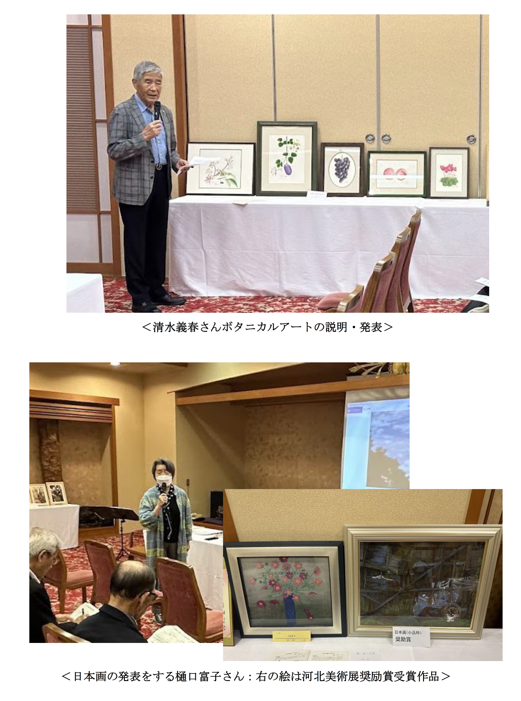 東北支部創立55周年記念祝賀会は、9月16日(月)福島県郡山市磐梯熱海温泉四季彩一力において開催されました。祝賀会は二部構成で、第一部の「作品展」は2F「飛楊」で14時30分から、出品者13名の作品展示(写真映像も含め)と、出品者の苦労話などの製作者発表に盛大な拍手が送られていました。また、製作者が持参してきたプレゼント作品(自作の小さな作品や作品のコピー)が希望者に配られる等、全員の方が作品をお土産に持ち帰る事ができました。