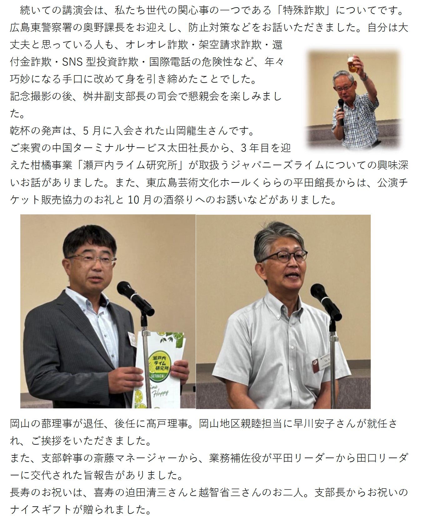 中国四国支部より 「2025年中国四国支部総会・懇親会の報告」が掲載されました