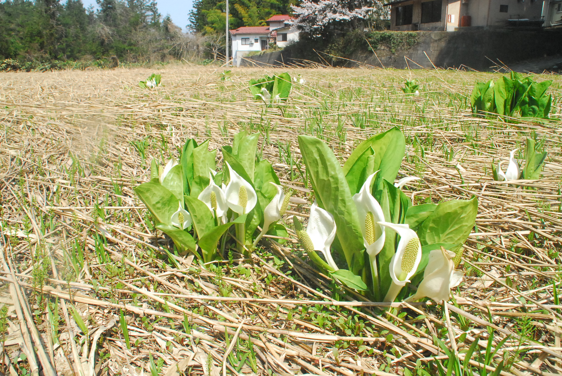③説明      :ここは元は田んぼで今は耕作放棄地になっています。もう少しすると3M位の茅原となります。30箇所位水芭蕉が咲くようになっていました。